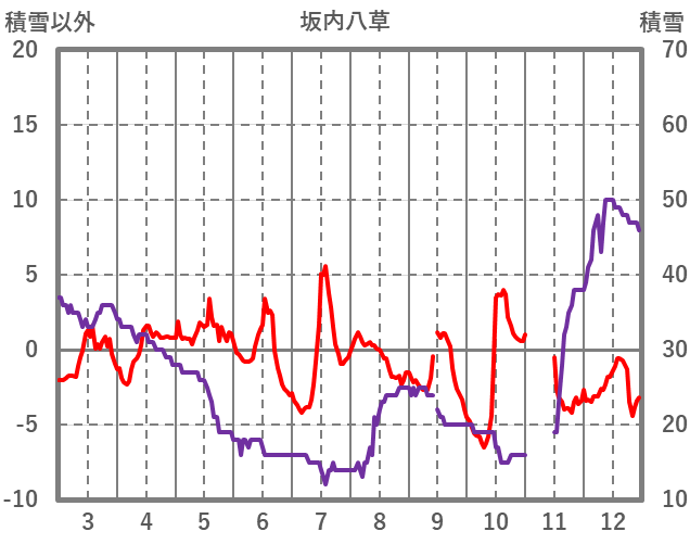 | 日 | 時 | 気温 | 降水 | 風向/風速 | 日照 | 積雪 | 降雪 |