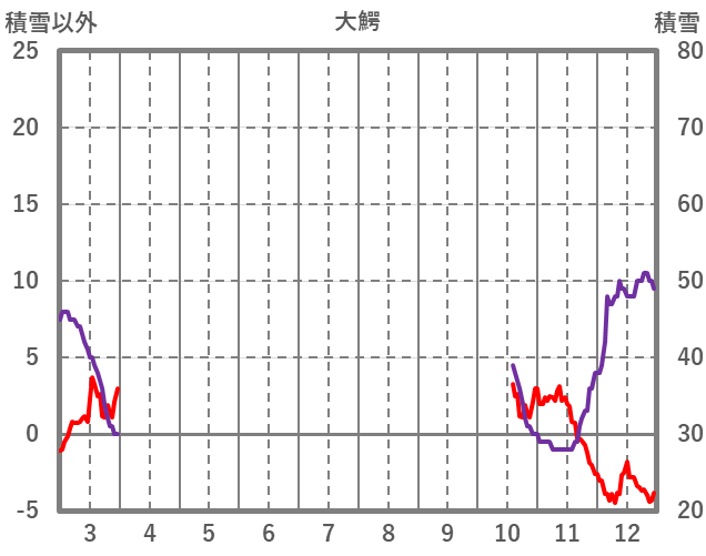| 日 | 時 | 気温 | 降水 | 風向/風速 | 日照 | 積雪 | 降雪 |