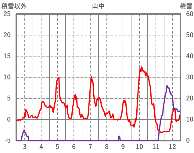 | 日 | 時 | 気温 | 降水 | 風向/風速 | 日照 | 積雪 | 降雪 |