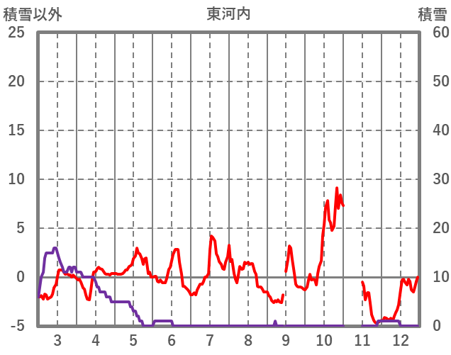 | 日 | 時 | 気温 | 降水 | 風向/風速 | 日照 | 積雪 | 降雪 |