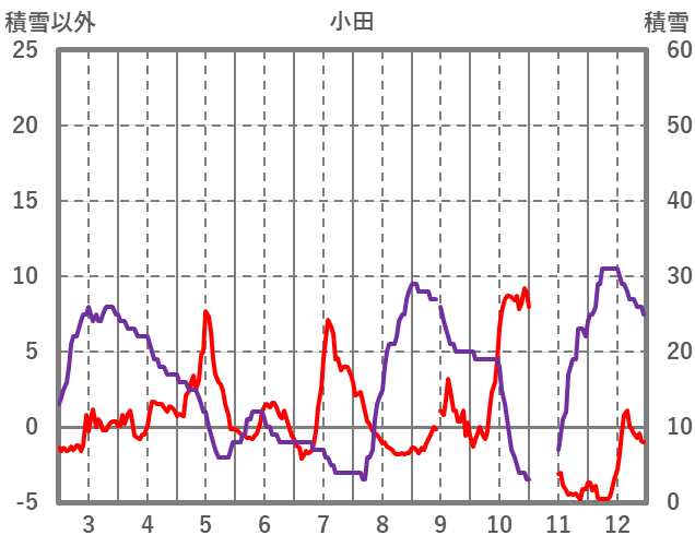 | 日 | 時 | 気温 | 降水 | 風向/風速 | 日照 | 積雪 | 降雪 |