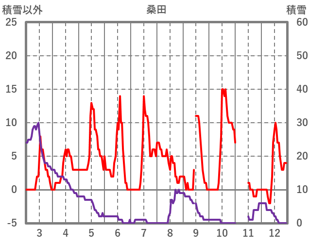 | 日 | 時 | 気温 | 降水 | 風向/風速 | 日照 | 積雪 | 降雪 |