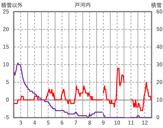 | 日 | 時 | 気温 | 降水 | 風向/風速 | 日照 | 積雪 | 降雪 |