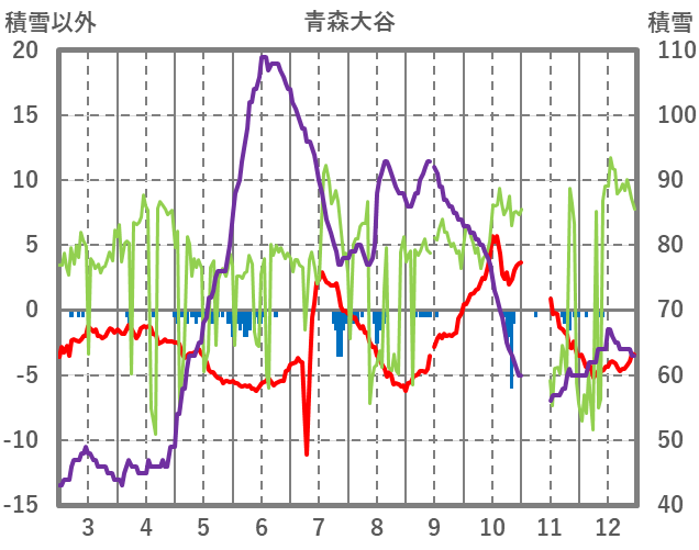 | 日 | 時 | 気温 | 降水 | 風向/風速 | 日照 | 積雪 | 降雪 |