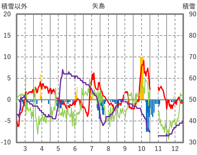 | 日 | 時 | 気温 | 降水 | 風向/風速 | 日照 | 積雪 | 降雪 |