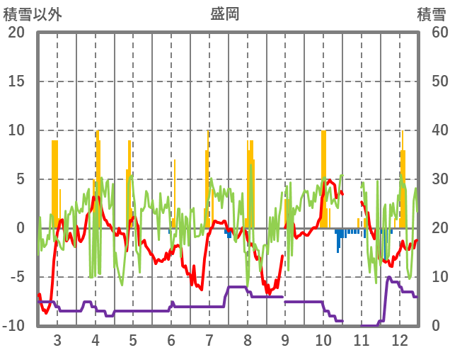 | 日 | 時 | 気温 | 降水 | 風向/風速 | 日照 | 積雪 | 降雪 |