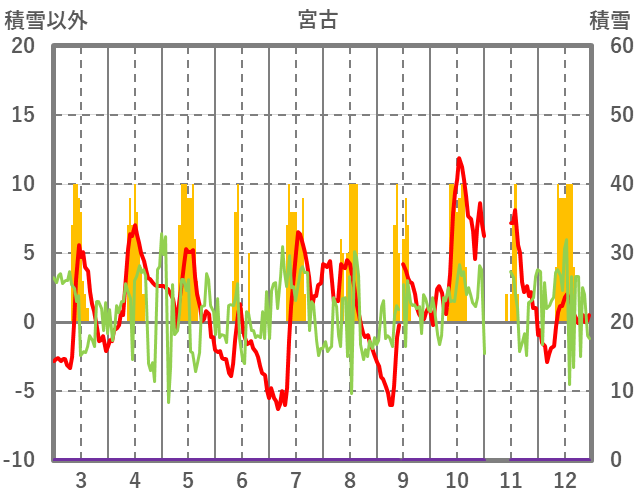 | 日 | 時 | 気温 | 降水 | 風向/風速 | 日照 | 積雪 | 降雪 |
