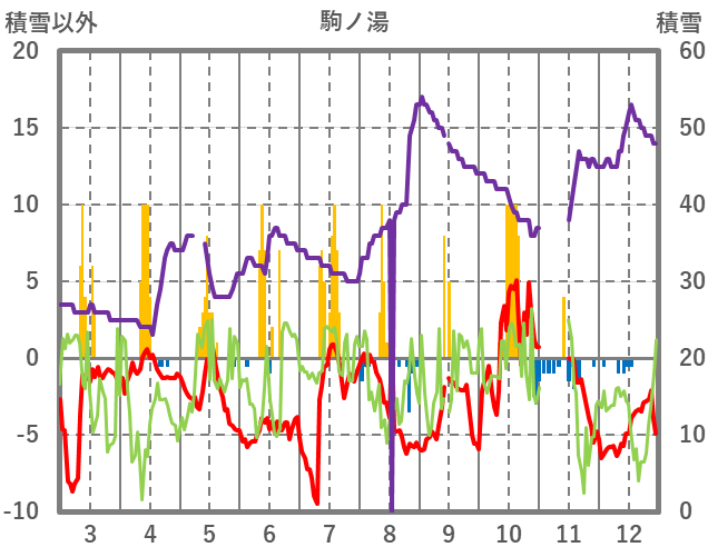 | 日 | 時 | 気温 | 降水 | 風向/風速 | 日照 | 積雪 | 降雪 |