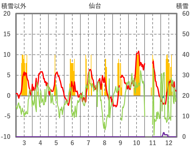 | 日 | 時 | 気温 | 降水 | 風向/風速 | 日照 | 積雪 | 降雪 |