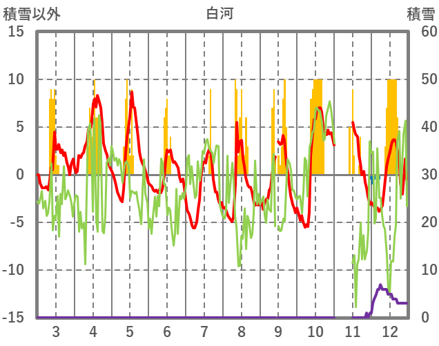 | 日 | 時 | 気温 | 降水 | 風向/風速 | 日照 | 積雪 | 降雪 |