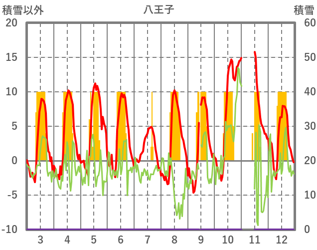 | 日 | 時 | 気温 | 降水 | 風向/風速 | 日照 | 積雪 | 降雪 |