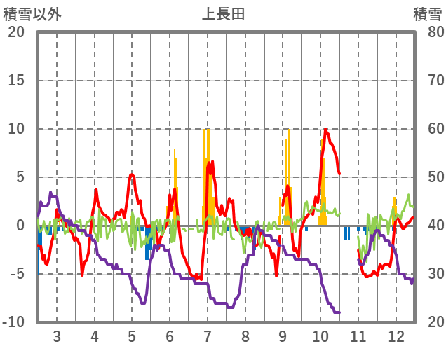 | 日 | 時 | 気温 | 降水 | 風向/風速 | 日照 | 積雪 | 降雪 |
