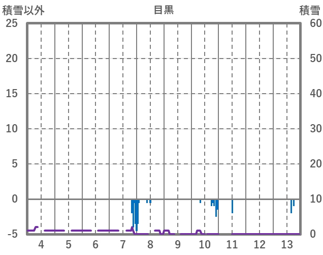 | 日 | 時 | 気温 | 降水 | 風向/風速 | 日照 | 積雪 | 降雪 |