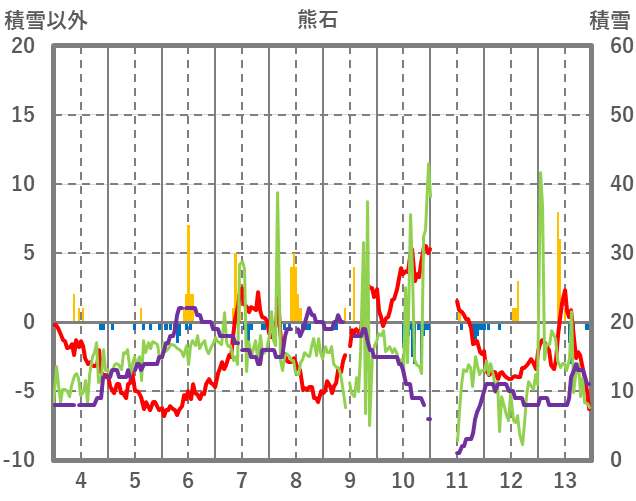 | 13 | -5.6 | 0.5 | NNW/1.7 | 12 | 22 | 0 | |
