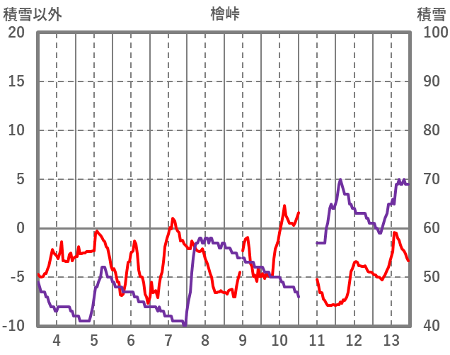 | 日 | 時 | 気温 | 降水 | 風向/風速 | 日照 | 積雪 | 降雪 |