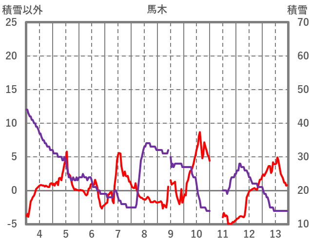 | 日 | 時 | 気温 | 降水 | 風向/風速 | 日照 | 積雪 | 降雪 |