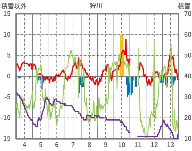 | 日 | 時 | 気温 | 降水 | 風向/風速 | 日照 | 積雪 | 降雪 |