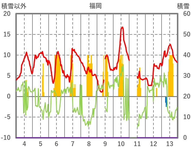 | 日 | 時 | 気温 | 降水 | 風向/風速 | 日照 | 積雪 | 降雪 |