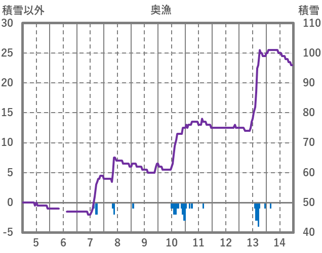 | 日 | 時 | 気温 | 降水 | 風向/風速 | 日照 | 積雪 | 降雪 |