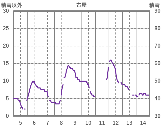 | 日 | 時 | 気温 | 降水 | 風向/風速 | 日照 | 積雪 | 降雪 |