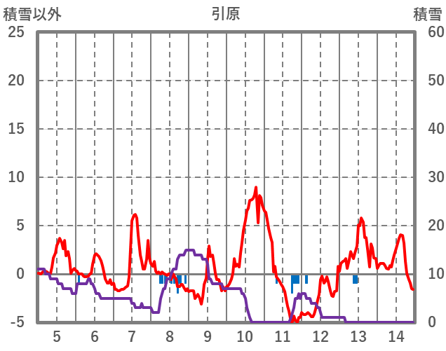 | 日 | 時 | 気温 | 降水 | 風向/風速 | 日照 | 積雪 | 降雪 |