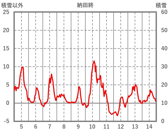 | 日 | 時 | 気温 | 降水 | 風向/風速 | 日照 | 積雪 | 降雪 |