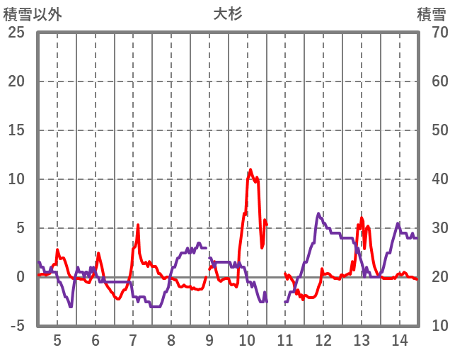 | 日 | 時 | 気温 | 降水 | 風向/風速 | 日照 | 積雪 | 降雪 |