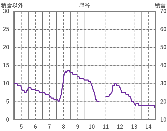 | 日 | 時 | 気温 | 降水 | 風向/風速 | 日照 | 積雪 | 降雪 |