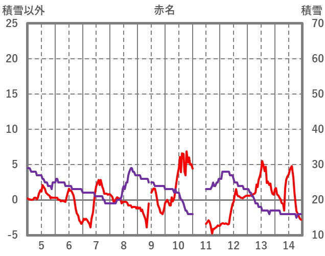 | 日 | 時 | 気温 | 降水 | 風向/風速 | 日照 | 積雪 | 降雪 |
