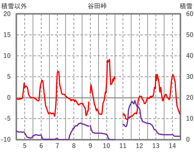 | 日 | 時 | 気温 | 降水 | 風向/風速 | 日照 | 積雪 | 降雪 |