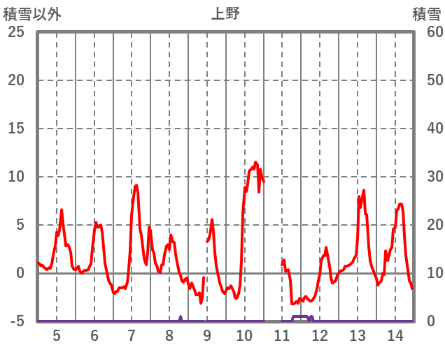 | 日 | 時 | 気温 | 降水 | 風向/風速 | 日照 | 積雪 | 降雪 |