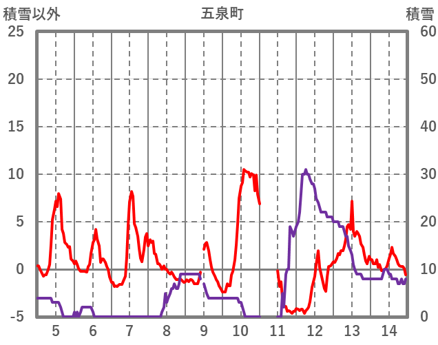 | 日 | 時 | 気温 | 降水 | 風向/風速 | 日照 | 積雪 | 降雪 |