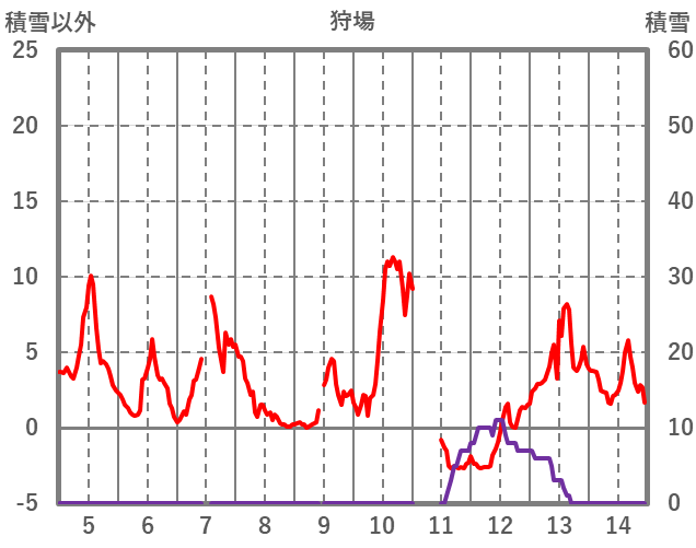 | 日 | 時 | 気温 | 降水 | 風向/風速 | 日照 | 積雪 | 降雪 |