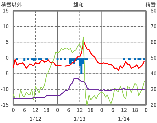 | 日 | 時 | 気温 | 降水 | 風向/風速 | 日照 | 積雪 | 降雪 |