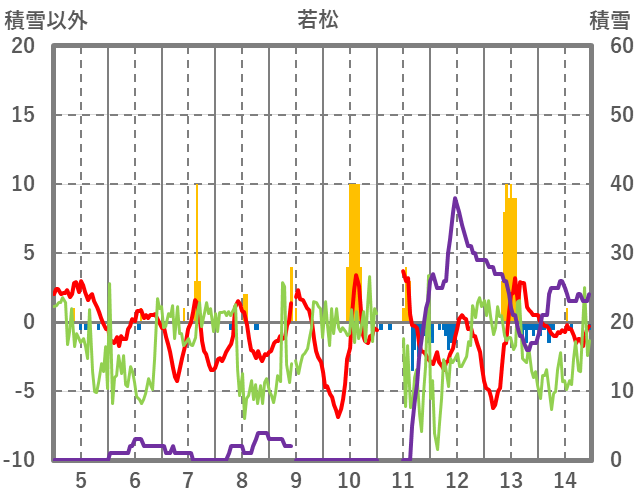 | 日 | 時 | 気温 | 降水 | 風向/風速 | 日照 | 積雪 | 降雪 |