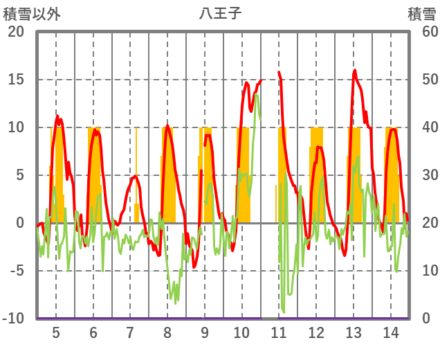 | 日 | 時 | 気温 | 降水 | 風向/風速 | 日照 | 積雪 | 降雪 |