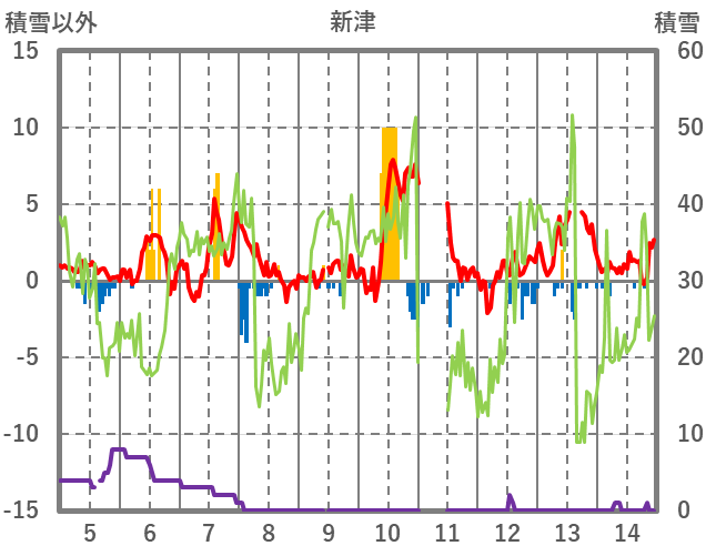 | 日 | 時 | 気温 | 降水 | 風向/風速 | 日照 | 積雪 | 降雪 |