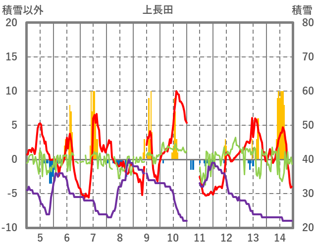 | 日 | 時 | 気温 | 降水 | 風向/風速 | 日照 | 積雪 | 降雪 |