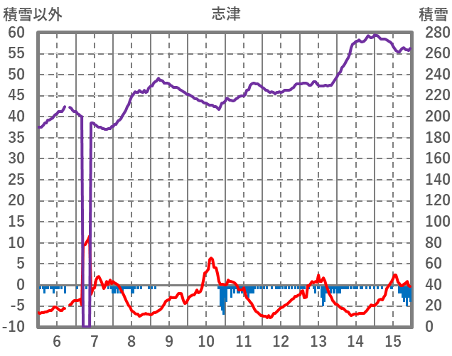 | 日 | 時 | 気温 | 降水 | 風向/風速 | 日照 | 積雪 | 降雪 |