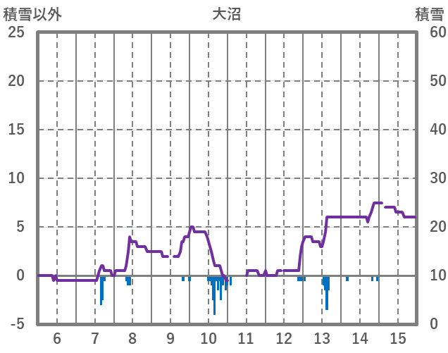 | 日 | 時 | 気温 | 降水 | 風向/風速 | 日照 | 積雪 | 降雪 |