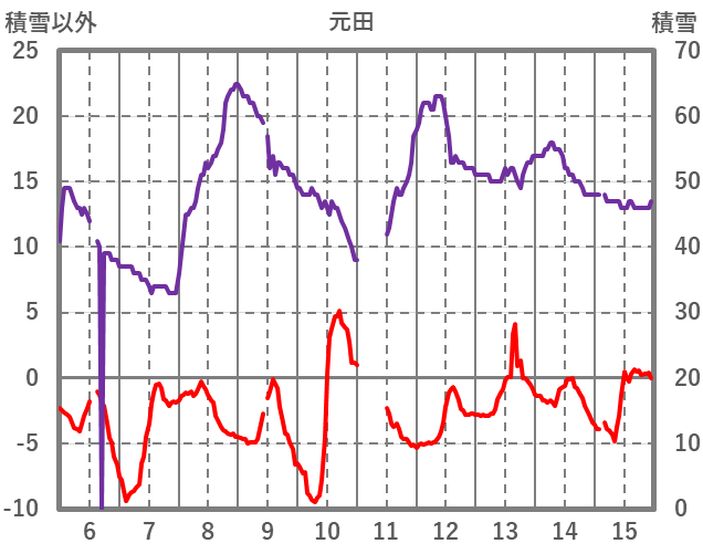 | 日 | 時 | 気温 | 降水 | 風向/風速 | 日照 | 積雪 | 降雪 |