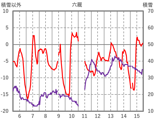 | 日 | 時 | 気温 | 降水 | 風向/風速 | 日照 | 積雪 | 降雪 |