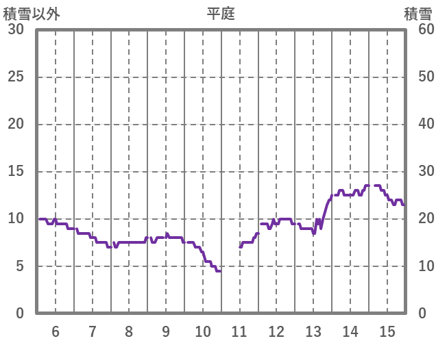 | 日 | 時 | 気温 | 降水 | 風向/風速 | 日照 | 積雪 | 降雪 |