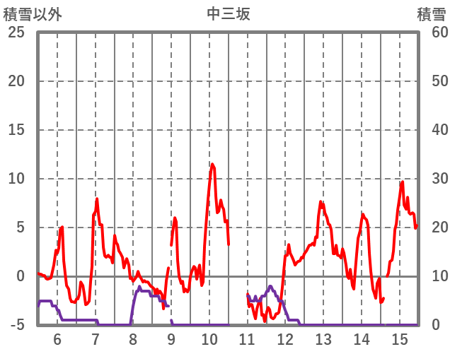| 日 | 時 | 気温 | 降水 | 風向/風速 | 日照 | 積雪 | 降雪 |