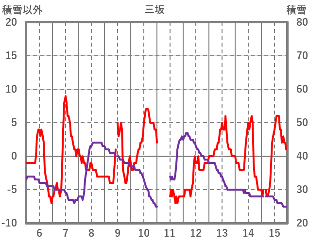 | 日 | 時 | 気温 | 降水 | 風向/風速 | 日照 | 積雪 | 降雪 |
