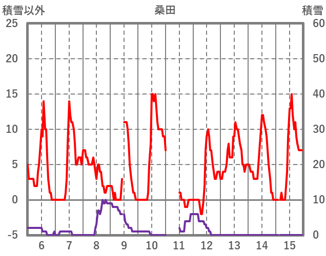 | 日 | 時 | 気温 | 降水 | 風向/風速 | 日照 | 積雪 | 降雪 |