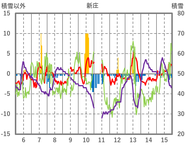 | 日 | 時 | 気温 | 降水 | 風向/風速 | 日照 | 積雪 | 降雪 |