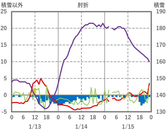 | 日 | 時 | 気温 | 降水 | 風向/風速 | 日照 | 積雪 | 降雪 |