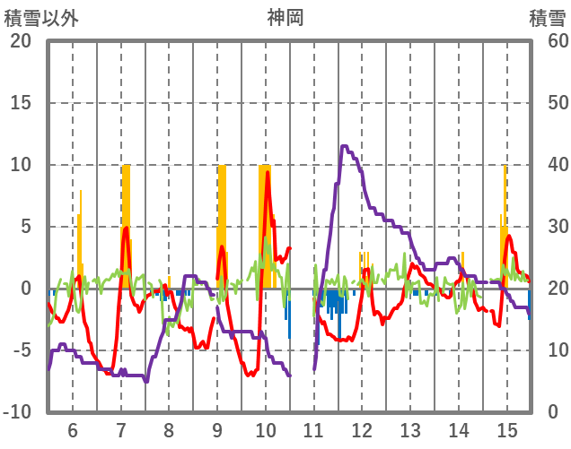 | 日 | 時 | 気温 | 降水 | 風向/風速 | 日照 | 積雪 | 降雪 |