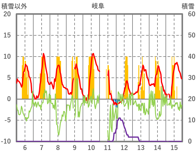 | 日 | 時 | 気温 | 降水 | 風向/風速 | 日照 | 積雪 | 降雪 |